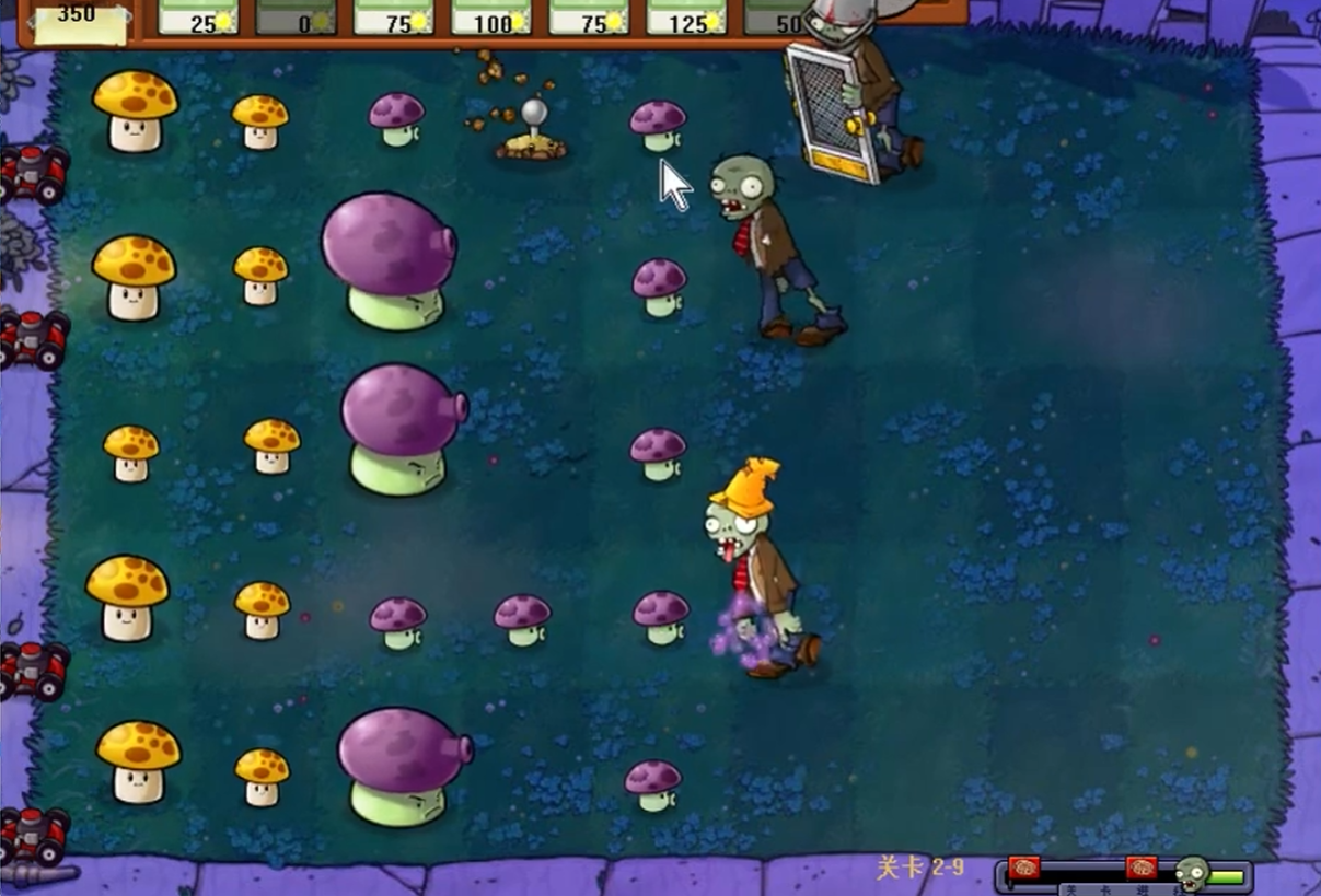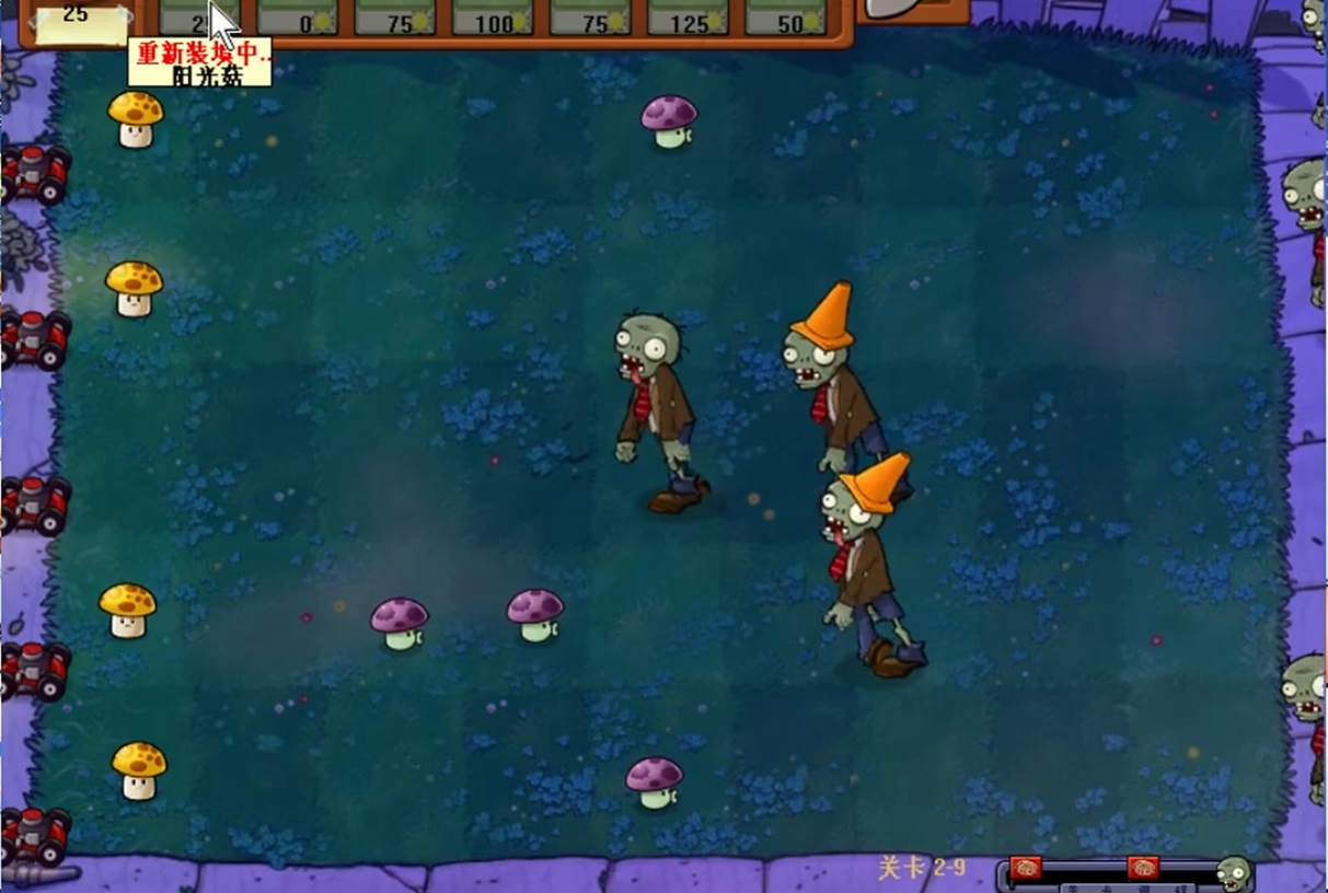 后期需要应对混合僵尸潮,阳光管理尤为重要。保留至少200阳光用于紧急情况,樱桃炸弹可一次性解决泳池区域的密集敌人。魅惑菇对橄榄球僵尸有奇效,但要注意被魅惑的僵尸会缓慢回血。金盏花随机产生阳光的特性能缓解经济压力,但不宜过多种植。当最后一波僵尸来袭时,可主动触发小推车清理漏网之鱼,但需确保主要防线不被突破。