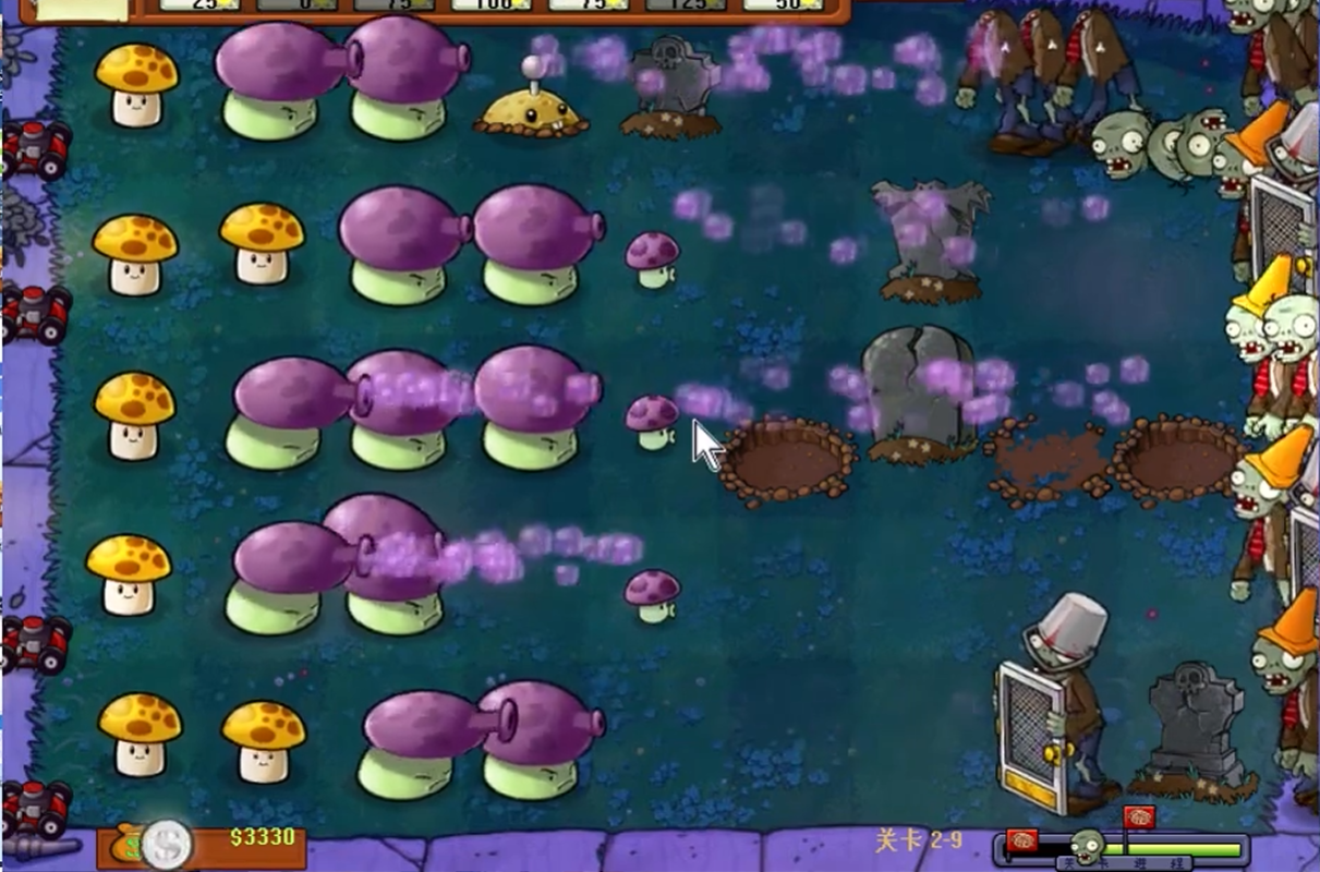 开局阶段需优先保证阳光供应,建议在第一列种植向日葵,但要注意墓碑模式会持续生成障碍物。阳光积累到一定程度后,立即在第二、三列部署大喷菇形成基础火力网。由于该版本僵尸出现速度加快,早期防线必须兼顾前两行的防御,可适当使用土豆雷应对突发情况。墓碑会干扰植物种植位置,需要及时用咬咬碑清理关键格位,同时保留一定阳光应对中期的僵尸潮。