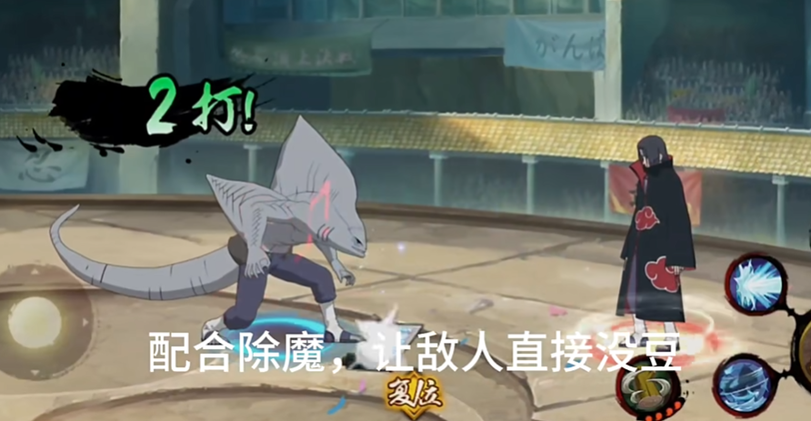 忍者克制关系较为明显,对地面型忍者具有压制力,但会被空中技能型角色如迪达拉、宇智波鼬等克制。在决斗场地图选择上,狭窄地形更利于发挥其X轴优势。连招基础套路为:二技能起手命中后接普攻3A,立即切换冲锋形态一技能突进,最后用奥义收尾。需特别注意冲锋状态的普攻会改变攻击模式,命中后会产生小幅击退效果。