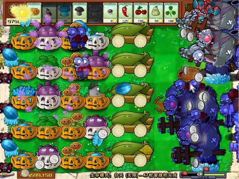 无尽模式是游戏后期最具挑战性的玩法之一,其核心在于通过合理的阵容搭配和战术策略应对无限波次的僵尸进攻。关键在于构建以玉米加农炮为主体的输出体系,配合冰西瓜减速和忧郁菇的范围攻击形成稳定防线。开局需快速积累阳光至9990上限,优先在泳池区域布置双子向日葵,陆地前排放置坚果墙和地刺拖延时间,为后期阵容成型争取空间。玉米加农炮应成对发射以保证火力覆盖,落点通常选择第2列和第5行实现全屏压制。