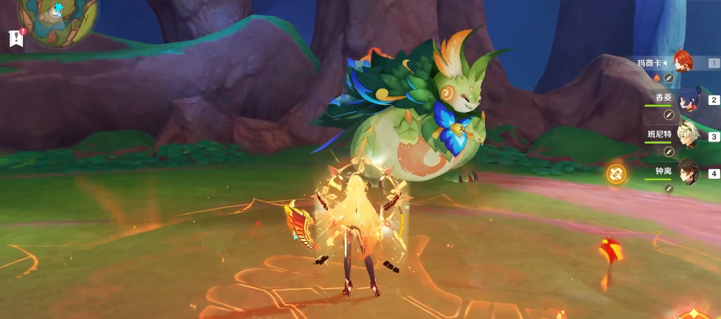 元素反应搭配上,蒸发和融化是玛薇卡最有效的增伤途径。后台挂水角色如夜兰或行秋能稳定触发蒸发,而冰系辅助如茜特菈莉可提供挂冰环境打融化。需注意火元素附着强度,避免反应被反向消耗。若走纯火路线,枫原万叶的减抗与班尼特的攻击加成能直接提升火伤,但整体收益略低于增幅反应队伍。