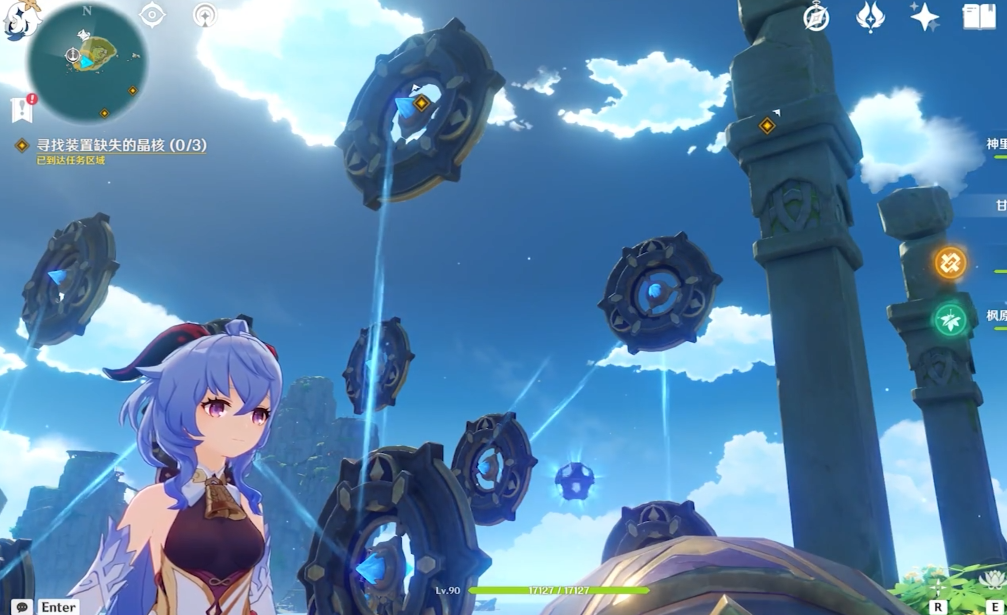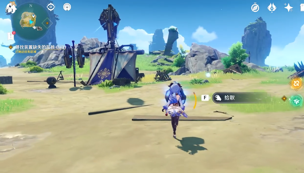 第一个晶核需要开船前往目标岛屿,这里有两个旋转机关。近处的机关按顺序右转、左转、左转操作三次,远处的机关则是左转、左转、右转三次。完成后晶核会掉落到地上直接拾取就行。如果转错了方向别担心,重新登录游戏机关就会重置。