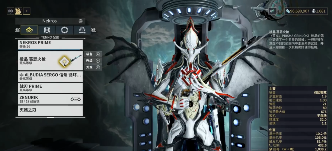 驱魔之刃是投掷型近战武器的代表,拥有无限连击时间和极大爆炸范围。其投掷攻击强制触发冲击与电击异常,配合高暴击倍率,能对群体目标造成毁灭性打击。该武器适合搭配提升范围与暴击的振幅晶体,以最大化输出效率。