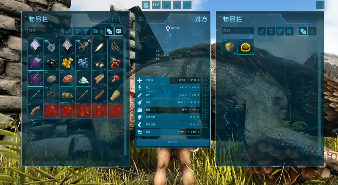 驯服成功后,咱们要到69级才能解锁镰刀龙的鞍具。镰刀龙主要分布在内陆的森林和平原附近,像雪山入口、蓝方舟方向的巨型骸骨边上都是不错的寻找地点。镰刀龙特别实用,左键能采集肉、木头、兽皮、甲壳和聚合物,右键可以采纤维,按C键还能收集浆果。加点时可以优先提升采集加成,这样效率会更高。