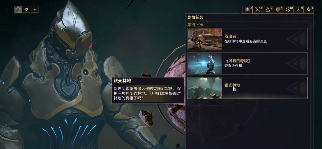 拿到银光林地的魅影,咱们得先搞定新世间的任务线。从集团接取任务后,会看到一段录像提示咱们去地球探索。这时候别急着冲,记得先检查背包里的药剂装备,尤其是暮光药剂或日出药剂,这些是开启祭坛的关键道具。药剂材料得在地球不同时段采集,比如白天找日光松果,晚上扫月光龙百合,灶神苔藓得去土星或水星的岩石洞窟慢慢搜。