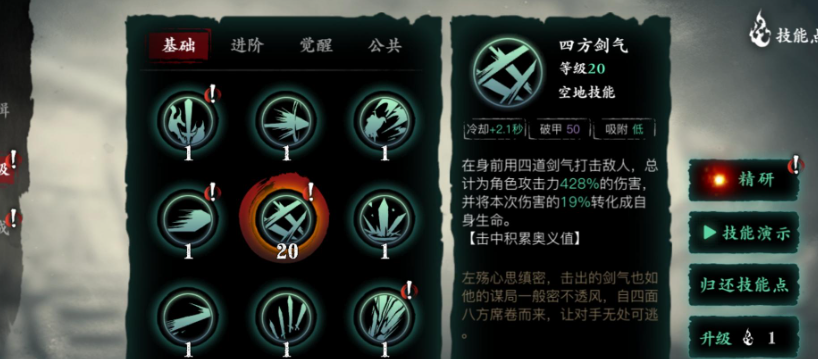 左殇的核心输出技能如金龙剑、巨剑飞旋是精研首选,单点强化可提升70%以上的伤害倍率。破甲技能(如四方剑气)建议放在连招链前端,控制技能(如定身剑)用于衔接。轻羽系技能依赖闪避取消后摇,需谨慎分配精研点;无锋系则优先强化防御和霸体效果。