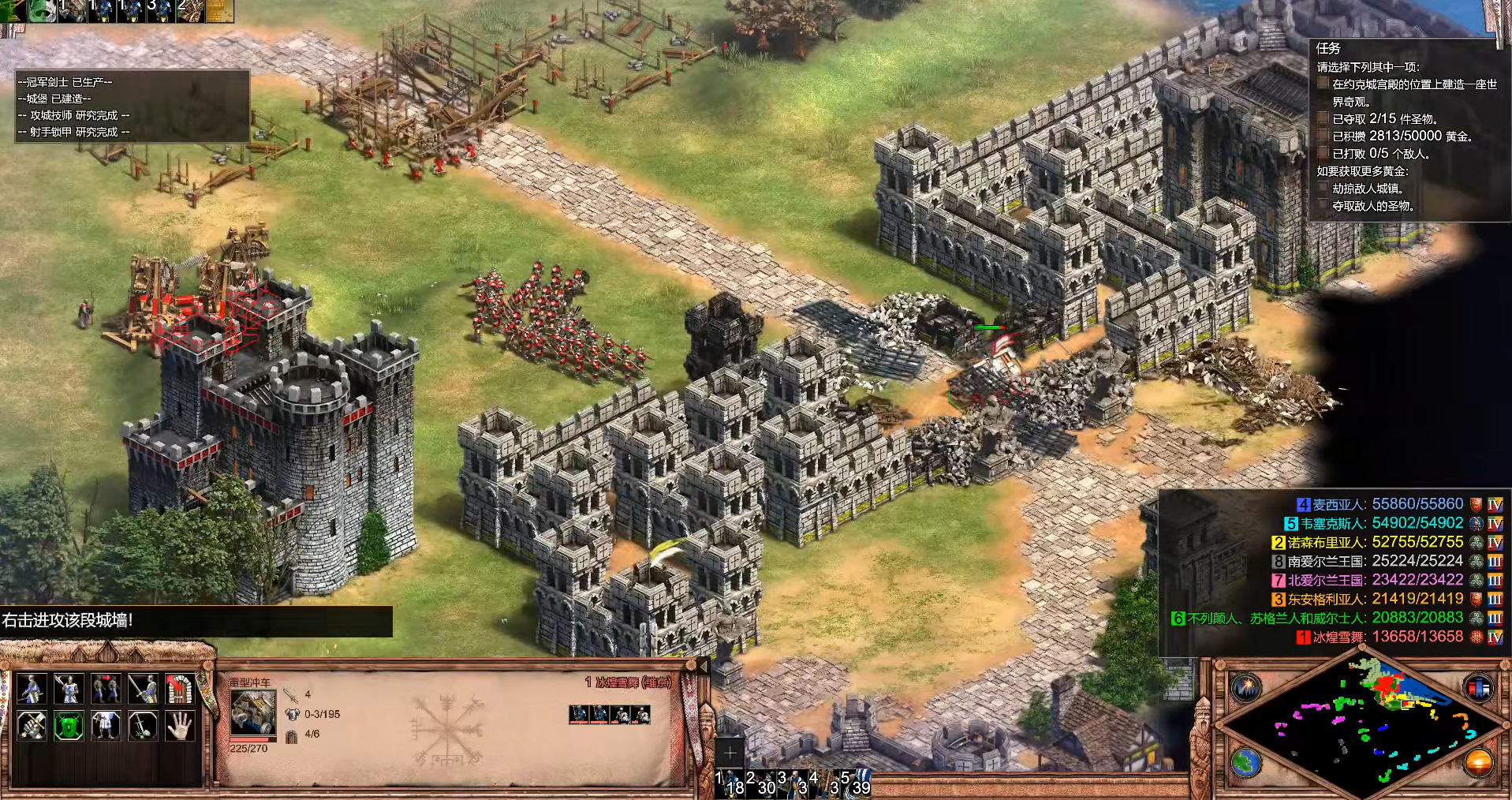 攻城阶段是最刺激的部分,约克城防御很坚固,正面硬冲肯定吃亏。最好采用分割包围的策略,先用投石车远程轰开几个缺口,再派步兵逐个击破城堡。地形高低很重要,占据高地打起来会轻松很多。如果发现敌人经济区,派小队去骚扰一下能有效削弱对方实力。