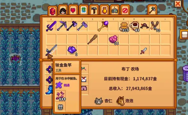 前期钓鱼难度较高,因为绿色能量条很窄,但随着等级提升会变长。多吃增加钓鱼等级的食物能临时提升技能,比如鳟鱼汤。使用高级鱼竿和鱼饵也能提高成功率,铱金鱼竿可以安装鱼饵和鱼钩,让钓鱼更轻松。记得在不同地点尝试钓鱼,有些区域更容易钓到高品质鱼。