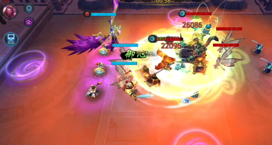 开局先开大招雷霆战魂,战魂加持下普攻附带灼烧效果,接着接一技能魔神噬魂的三段暗影波,被动叠加的物理伤害会额外提升。二技能破军对决是单挑神技,强制敌人互殴时免疫大部分技能伤害,搭配大招还能吸血,优先对脆皮使用可快速减员。注意战魂结束时按总伤害量回血,续航能力让蚩尤在持久战中优势明显。
