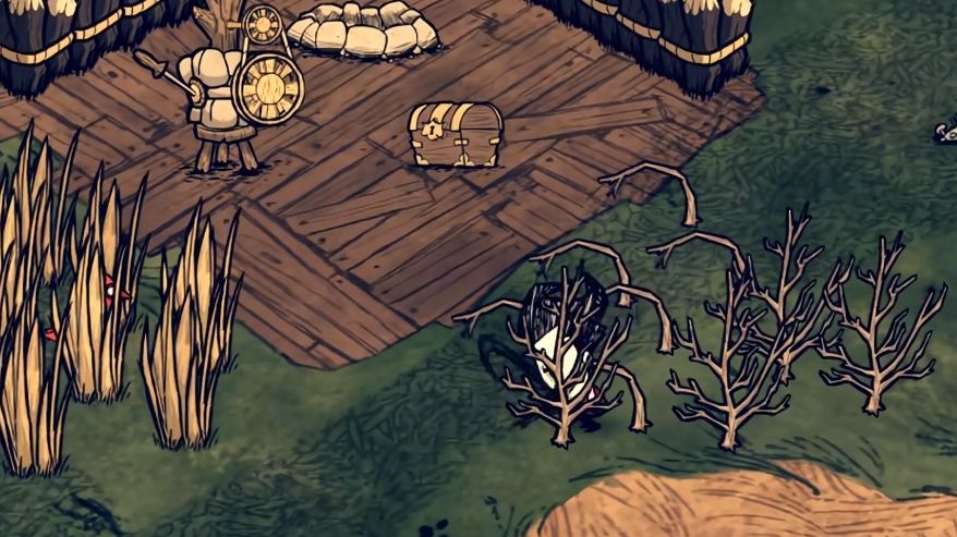 饥荒联机版是一款多人合作的生存冒险游戏,玩家需要在一个充满危险和未知的世界中生存下来。游戏的核心玩法包括资源收集、基地建设、食物获取和对抗各种威胁。初期生存的关键在于快速建立基础资源储备,包括草、树枝、燧石和木材,这些是制作工具和火把的必需品。火把在夜晚至关重要,可以防止被黑暗中的查理攻击。科学机器(一本科技)是解锁更多高级道具的基础,建造后可以制作背包、长矛等实用物品。