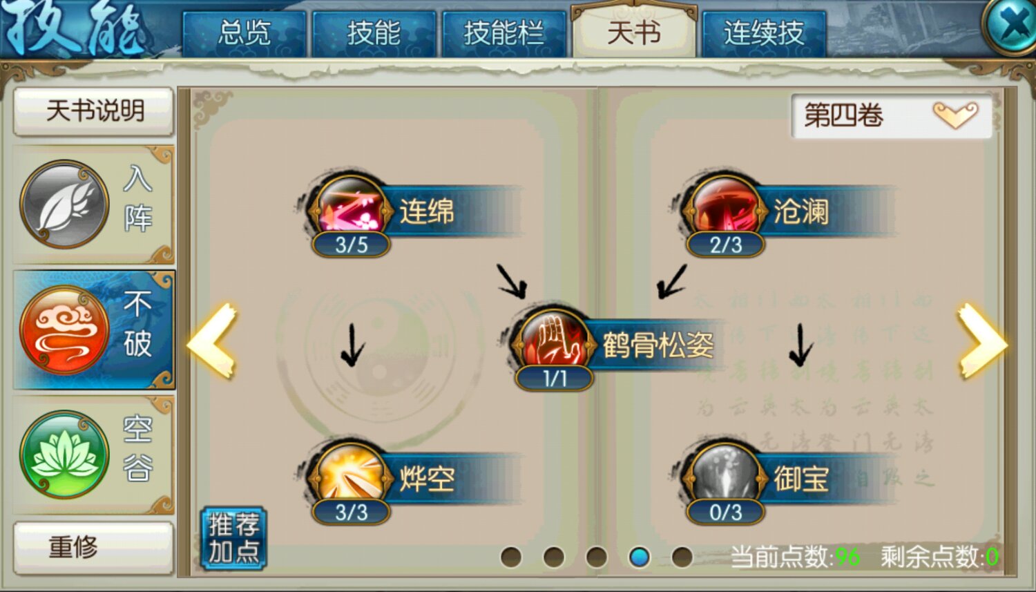 云梦辅助流的核心在于团队支援,通过治疗、增益和控制技能为队友创造优势。天书选择主空谷辅不破,空谷能提升治疗免疫控制效果,不破则增强大招的负面状态叠加能力。技能加点优先满春风化雨、枯木逢春和山外清音,这三个技能是辅助流的支柱,春风化雨提供持续治疗,枯木逢春群体回血,山外清音增加团队防御和抗性。彩云追月只需1级用于位移和解控,移花接木也点1级应对紧急情况。