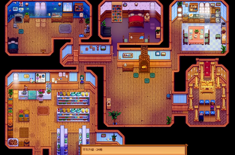 背包是存放物品的重要工具,初始容量仅有12格,很容易在采集资源或探险时出现空间不足的情况。扩充背包需要通过皮埃尔的杂货店进行升级,具体操作是进入杂货店后点击收银台右侧的红色背包图标,支付相应金币即可完成扩容。背包最多可升级两次,最终容量可达36格,这将显著提升游戏体验和资源收集效率。
