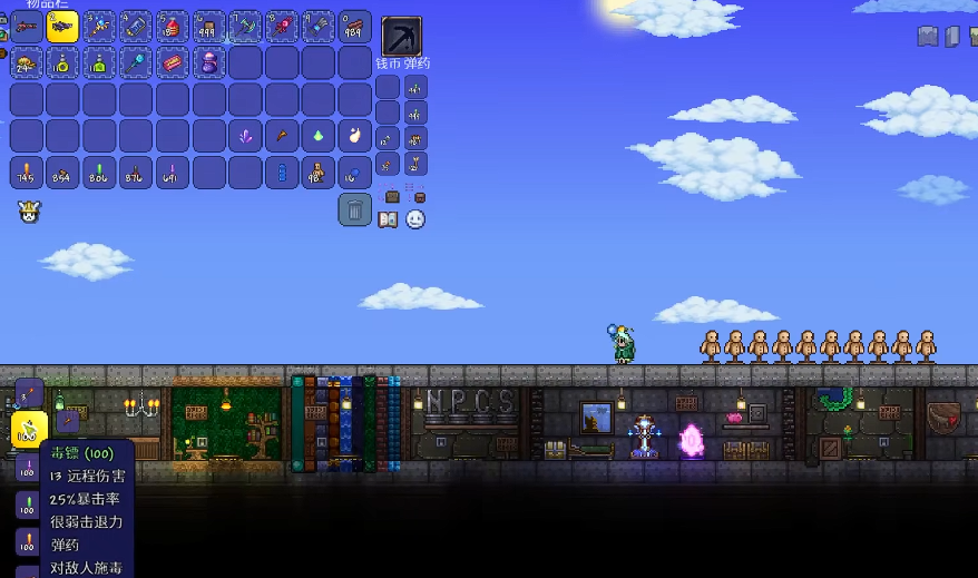 水晶镖是后期飞镖,需要困难模式下的水晶碎块。这种材料会在地下神圣之地的珍珠石块或粉冰雪块附近生成。记得带上好镐子去挖,因为神圣之地的敌怪强度较高。如果前期缺材料,建议优先做毒镖或诅咒镖,它们的获取难度相对较低,对付普通敌怪效果不错。