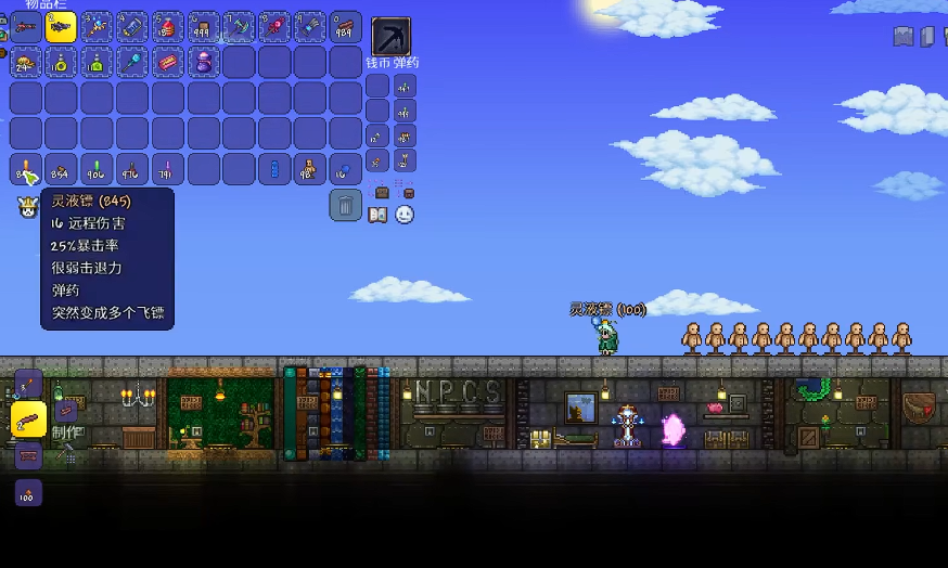 飞镖的实战表现很灵活,尤其适合中距离拉扯战斗。比如灵液镖能降低敌人防御,水晶镖则有穿透效果。如果想提升效率,可以搭配远程伤害加成饰品,比如游侠徽章或箭袋。飞镖属于消耗品,建议多囤些材料备用,尤其是打BOSS前记得检查库存。