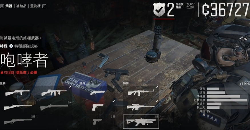 若选择通过营地购买,需优先提升巫师岛的信任等级至二级或三级,并积累足够的营地货币。信任等级可通过完成该区域的主线任务、支线委托或清理感染区提升。加特林作为后期武器,购买后会永久解锁于武器柜,但需注意营地商店的武器库存会随剧情推进逐步开放。
