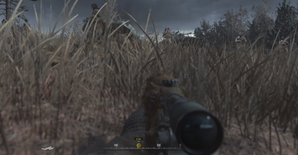 咱们需要明确这关的流程分为潜行狙杀和撤离防守两阶段。开局跟着麦克米兰上尉爬行前进,千万别站起来,敌人视野很广。草地和废墟是天然掩护,移动时注意屏幕边缘的提示——如果出现红色标记说明快被发现了,立刻停下。遇到双人巡逻队时,等他们背对再开枪,或者让队友解决一个。集装箱区域要特别小心,敌人会来回走动,建议趴在阴影处等他们走远再行动。