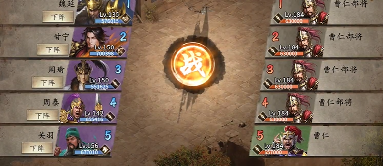 曹仁副本是一个难度较高的关卡,需要合理的武将配置和战术安排才能顺利通关。核心通关思路是使用技能据守并搭配特定武将组合。曹仁在回合结束时可以摸三张卡牌并将武将牌翻面,这一机制是通关的关键。建议使用孙权带紫爪和车,避免使用紫甲,否则容易被NPC破甲。马超觉醒后携带紫宝和紫色爪子能显著提升通关效率。