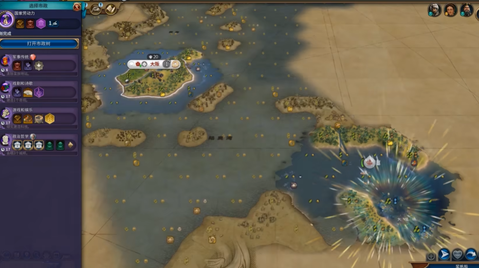明治维新的机制要求玩家在规划城市时注重区域之间的协同效应。将工业区与商业中心、学院等区域紧密相邻,可以使其生产力加成显著提升。同理,剧院广场若被多个其他区域包围,文化值收益也会大幅增加。这种设计使得日本在中期至后期的发育中具备较强潜力,尤其是当玩家解锁更多区域类型后,相邻加成的叠加效果将更为明显。