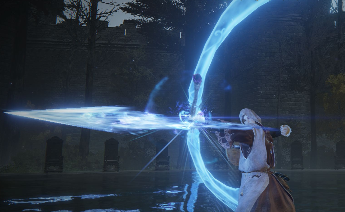 亚杜拉的月光剑、辉石大魔砾和罗蕾塔的大弓被广泛认为是当前版本中最强力的法术组合。这些法术在伤害输出、实用性和适用范围上表现突出,能够应对大多数战斗场景。亚杜拉的月光剑是法师流派的核心法术之一,其独特的两段伤害判定机制使其在近战和远程攻击中均能发挥巨大作用。该法术的剑气与剑身分别造成伤害,贴脸释放时爆发力极强,尤其对人形敌人具有显著的硬直效果。尽管起手速度较慢,但搭配猎犬步伐等战技可有效弥补这一短板。月光剑的释放不受地形限制,在狭窄空间或复杂环境中依然能稳定输出。