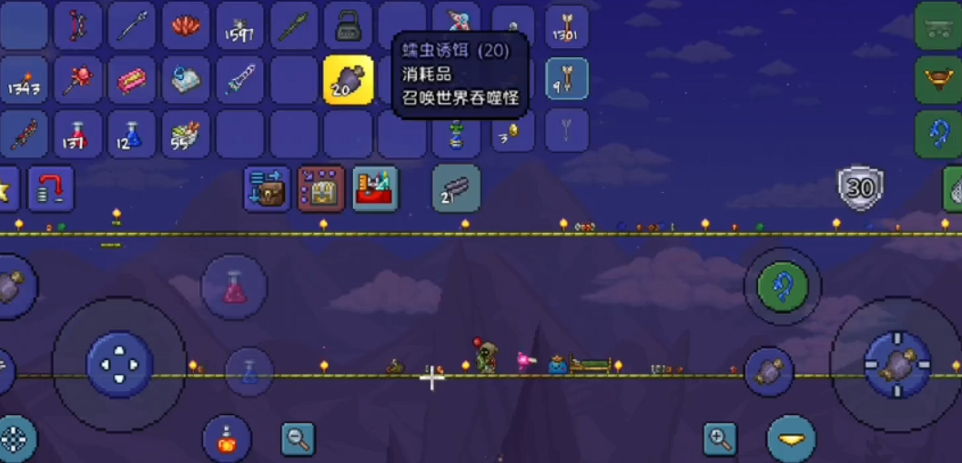 召唤世界吞噬者,咱们需要先准备好关键道具——蠕虫诱饵。这个召唤物可以在腐化之地使用,制作材料需要30个魔粉和15块腐肉。魔粉可以通过腐化之地的蘑菇在炼金台制作,腐肉则要击杀腐化之地的噬魂怪、吞噬怪等怪物掉落。集齐材料后,在恶魔祭坛或猩红祭坛旁边就能合成蠕虫诱饵啦。