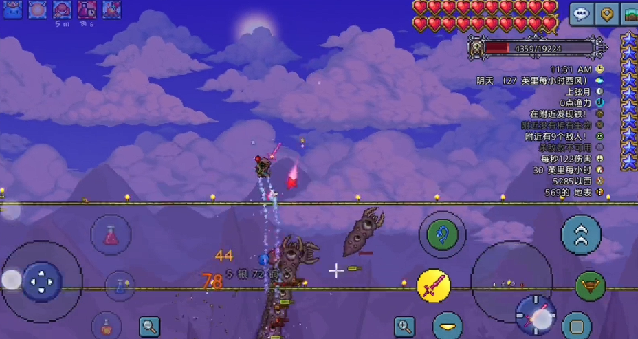 召唤成功后,世界吞噬者会以巨型蠕虫形态出现,战斗时最好选择穿透性武器或多段伤害装备。击败它能获得暗影鳞片和魔矿等重要材料,这些都是制作进阶装备的关键。如果第一次挑战觉得吃力,可以在地表搭建战斗平台,利用篝火和心形灯笼提升回血速度。