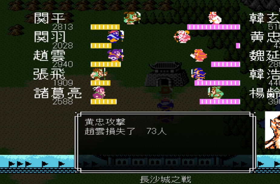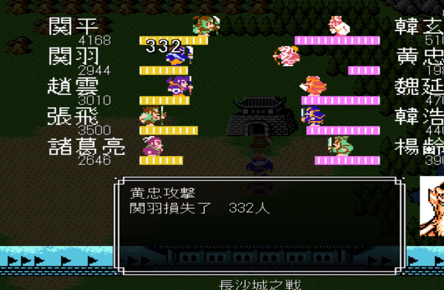 战斗前建议在武陵城获取钢枪等超前装备,长沙城西面山洞的养由弓对黄忠有额外克制效果。场景中段的立柱可实现视觉遮挡,Z型走位能有效规避纵劈冲击波。若未在荆州取得兵符,敌方防御力会异常提升,需通过江夏城花费500金获取兵符情报弥补属性差距。韩玄的纵劈闪光后第6帧防御值归零,可衔接浮空连段;黄忠狂暴状态需优先打断其技能前摇。双BOSS同场时,保持至少一名角色处于满兵力状态以应对突发情况,铜仙丹补充谋略点确保控场技能续航。