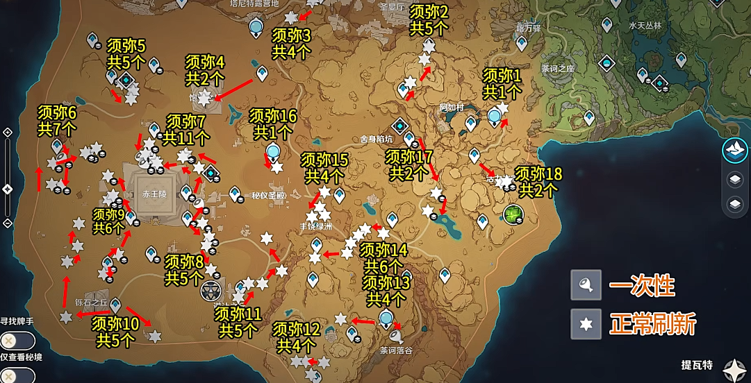 圣金虫在地面的部分比较好找,比如阿如村附近和丰饶绿洲周围,沿着沙丘和岩石缝隙就能发现。但地下部分就有点麻烦啦,比如赤王陵内部、饱饮之丘的密室,还有铄石之丘的遗迹里,都需要先解开机关或者打破石头才能进去。记得多留意发光的罐子和沙堆,有些圣金虫会藏在里面,用风元素吹开或者打碎罐子就能看到啦。