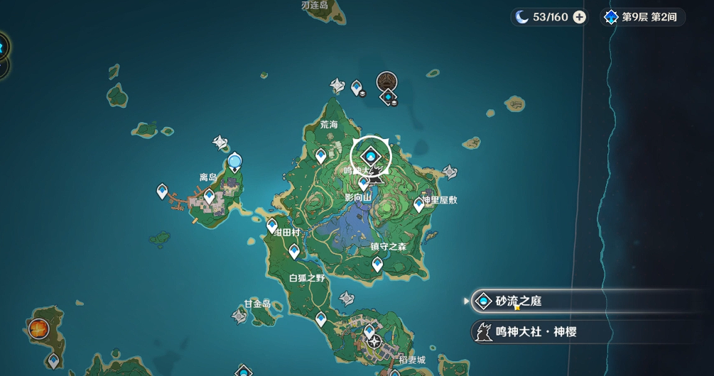 传送到鸣神大社的传送点后,往北面的悬崖方向走,砂流之庭就在悬崖下方。跳下去会看到一些古建筑和樱花花瓣解谜点,秘境入口就在附近。靠近后按互动键就能解锁。如果找不到具体位置,可以打开元素视野辅助确认。