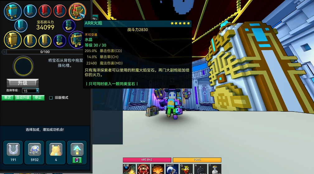 通过收集对应属性的宝石尘和原晶材料,可在角色界面升级宝石。水蓝宝石尘用于水系宝石升级,天空宝石尘适用于空气系宝石,火焰宝石尘则专供火系宝石使用。升级时需注意使用翡翠苜蓿或闪烁蹄铁等道具防止碎裂,并提高成功率。优先升级核心技能对应的宝石,例如炮台强化类或能量恢复类属性。