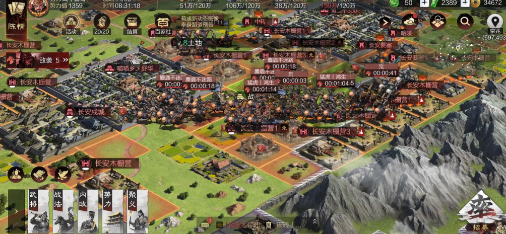 资源管理方面需要精细规划,在培养第二队时要确保木材、铁矿、石料和粮食的均衡获取,尤其要优先屯田石头和铁资源以支持建筑升级和征兵需求。主城仓库等级要控制在10级左右以储备足够资源,合理利用政令进行夜间屯田操作,同时避免同时培养多支队伍造成资源枯竭。建筑升级应紧跟主线任务,重点提升兵营等级来增加带兵量。