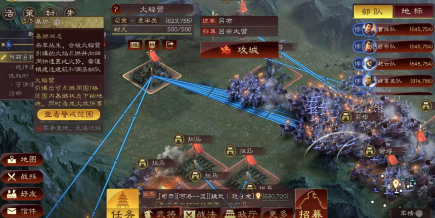 练级过程需要严格管理资源分配和兵力控制。吕布对于武力属性的需求是绝对的,兵力分配要遵循阈值以避免不必要损失。比如用3500兵力攻打四级地,4500兵力挑战五级地。避免越级作战是减少战损的核心,比如在低级阶段不要贸然攻击高级土地。建筑升级顺序应优先兵营和统帅厅以此通过兵力优势来缓解吕布队伍的脆弱性。