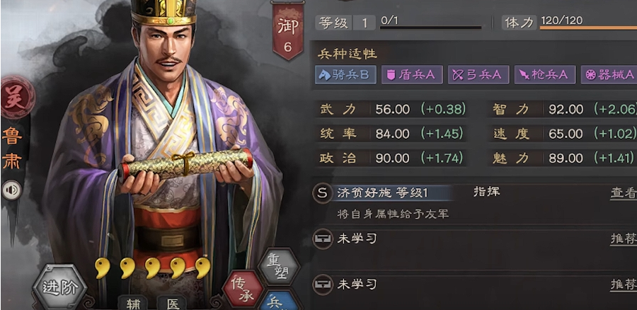 鲁肃自身的战法搭配则完全服务于活着并完成属性移交这一唯一目标。由于他自身属性会变得极低,因此他需要携带顶级的减伤战法来保护自己和队友。这些减伤战法能有效覆盖前几回合,确保队伍以健康的状态进入中期。为了弥补属性移交后自身近乎零贡献的尴尬,为鲁肃配备一些不受属性影响的指挥战法或特殊增益战法也是不错的选择,例如能为全体提供先攻或持续性伤害能力的战法,这样即使他属性低下,也能持续为团队做出贡献。鲁肃的战法格非常宝贵,每一个选择都直接影响队伍的硬度。