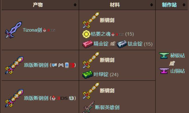 费这么大劲拿到断裂英雄剑,它到底能做什么呢,它的核心用途是作为觉醒材料,在秘银砧或山铜砧上,将两把强大的武器升级为它们的原版版本。一把断裂英雄剑可以和永夜刃合成,制作出原版永夜刃;另一把则可以和断钢剑合成,制作出原版断钢剑。这两把原版武器性能都得到了显著提升。而它最重要的使命,是用于合成游戏中最顶级的近战武器之一——泰拉刃。合成泰拉刃是一个漫长的过程,需要足足三把断裂英雄剑,以及其他多种高级材料,所以你可能需要经历多次日食才能攒齐。