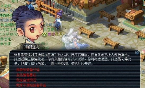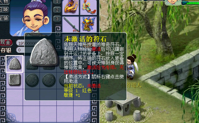 给装备镶嵌符石前,有两个重要的准备工作。你的装备必须先开运打出孔来。这个得去长安城找仙符道人,每次开运消耗一定的金钱和体力,而且开孔有成功概率,孔开得越多成功率会越低,是个挺考验耐心和运气的事儿。你获得的符石一开始是未激活状态,需要用鼠标右键点击它,消耗一些经验和体力来激活,激活后的符石就不能再交易给别人了,所以激活前要想清楚。一级符石可以通过做师门、日常活动或者找宝石商人买来获取,高级符石则需要用低级符石去合成。