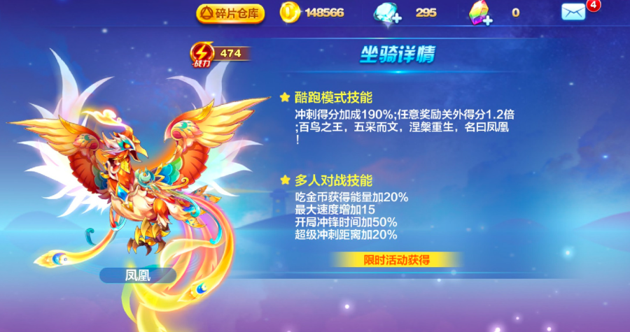坐骑作为搭配中的重量级组成部分,对加百列的技能循环效率有着直接影响。目前首选的坐骑是觉醒摩羯或凤凰,它们共有的优势在于能有效缩短技能冷却时间,帮助加百列更长时间地维持在高速冲刺的爆发状态之中。如果你手头有狻猊这类穿越奖励系的坐骑,也同样值得考虑,它能够与加百列技能触发时的穿越奖励形成联动,将单次技能的收益推到更高。坐骑的选择直接决定了你的技能释放节奏和基础得分能力,一个适配的坐骑能让整套搭配的运转如虎添翼。