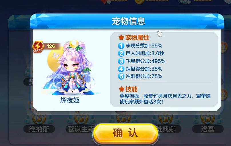宝物和宠物的配置是完善搭配的最后拼图,它们提供关键的属性补强和特殊效果。宝物方面,理想状况是装备她的双专属宝物,这能显著提升冲刺速度、技能持续时间以及穿越奖励的得分系数,是追求上限的必备之物。如果暂时没有专属宝物,那么优先选用能增加超级奖励得分或整体表现分的通用宝物作为过渡。宠物搭配则侧重于功能补充,辉夜姬在这里依然是万金油,其提供的能量补充或复活机制能大幅提升容错率;也可以选择一些能提供表现分加成或控制效果的宠物,来进一步拉高得分天花板。这一部分的搭配需要根据你已有的资源灵活调整,逐步向理想配置靠拢。