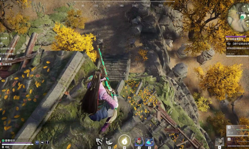 光会一次飞可不够,想在战斗里或者跑图时连续在墙上移动,就必须得管好你的精力值。每次在墙上蓄力飞一下,都要消耗固定的精力,那个蓝色的条子没了你就啥都干不了了,只能掉下来。所以你不能一直猛按,得有个节奏。有一个小技巧是在连续飞的过程中,可以短暂松开前进的方向键,让角色在墙上自然往下滑一小段,这个下滑的过程能帮你恢复一点点精力,而且还能让你的蓄力状态不中断。利用好这个技巧,你就能在一面大墙上或者几面墙之间连续穿行更长的距离了。