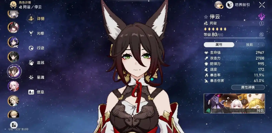 停云是四星雷属性同谐角色,她的功能性主要体现在战技提供的攻击力加成和雷属性附加伤害上,而终结技的50点能量回复对依赖大招循环的角色至关重要。停云的战技赐福效果能为队友带来持续的输出提升,且秘技能在战斗开始时快速回复自身能量,优化队伍循环效率。尽管是四星角色,但她的充能和增伤机制在当前版本中依然具有很高的实用性。