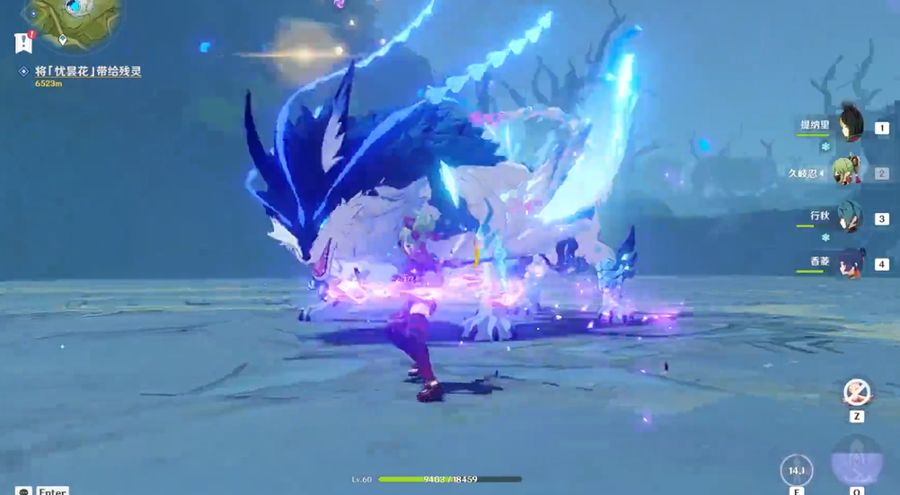 一阶段狼王主要使用冰属性攻击,技能包括冰刃突袭、冰霜领域和冰影囚杀等,这些技能前摇动作较长,玩家可以通过侧向冲刺或连续闪避来规避伤害。保持中距离观察狼王的动作预兆,避免贪刀,在它进入短暂休息时集中输出;注意当狼王绕场奔跑时,预判其冲刺路径并及时闪避,同时保留角色大招能量,为二阶段的激烈战斗做好准备。