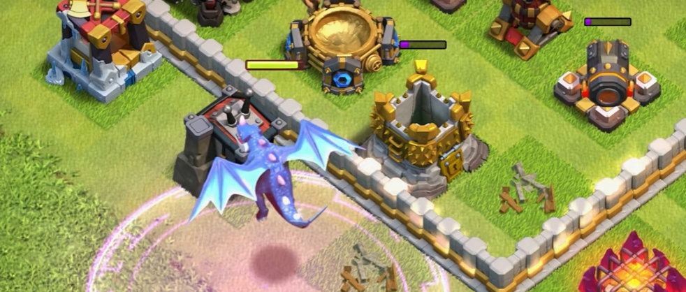 阵型设计上采用回形或多层城墙布局,将大本营和部落城堡置于中心,周围预留空地布置陷阱,红色大气球陷阱对飞龙克制效果明显,应放置在飞龙可能经过的路径上,玩家要注意避免将防御建筑扎堆,而是通过引导阵让雷龙始终处于火力范围内,从而最大化防御效率。