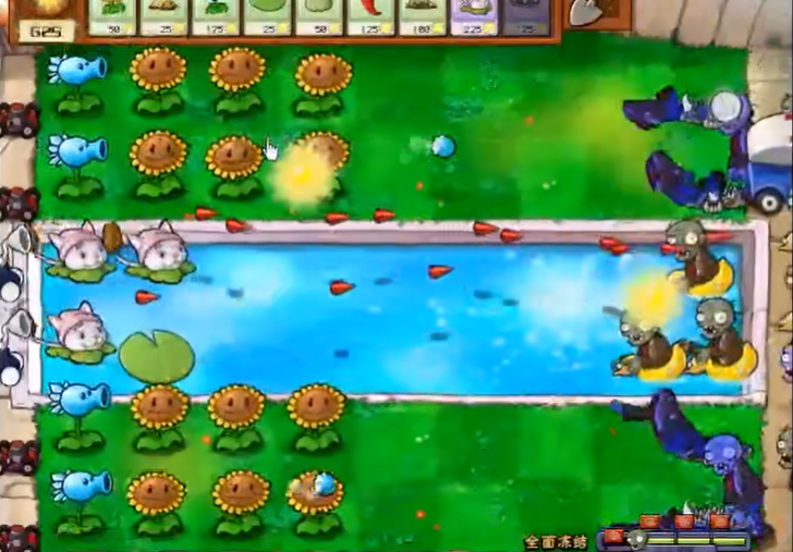 你应优先在场地后方种植两排向日葵,迅速积累阳光。前几波出现的僵尸,特别是早期的雪橇车,可以利用提前放置的土豆雷或窝瓜直接解决,注意节省阳光以应对突发状况。阳光稍有积累后,可以在陆地上补种一些豌豆射手提供基础火力,水路前期放置水草过渡即可。这个阶段的重点是稳住阵脚,为后续布局打下资源基础。