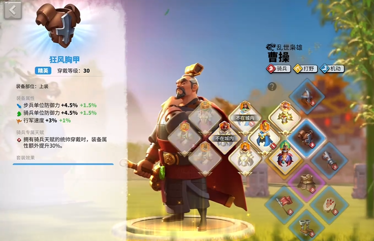 装备选择上,佩拉约推荐使用狂风套装来提升攻击属性,这样配合他的技能可以打出更稳定的伤害。贝利撒留则适合搭配先锋套装,这样能进一步增强行军速度,让你在游击战中更占优势。饰品方面可以考虑用失落峡谷金币兑换的移速类道具,头盔和鞋子最好选带移速词条的紫色或橙色装备,性价比比较高,主要目的是强化骑兵的快速移动能力而非正面硬拼的防御。在装备词条上优先骑兵攻击和移动速度加成,防御和生命属性可以稍微靠后,因为贝利撒留的主要定位是骚扰和扫田,不是去和敌方主力军团对刚,这样可以避免不必要的战损。属性堆叠上要注重协同,比如装备效果和天赋点结合,能让你在野外长时间保持高速状态,方便随时介入战斗或撤离。
