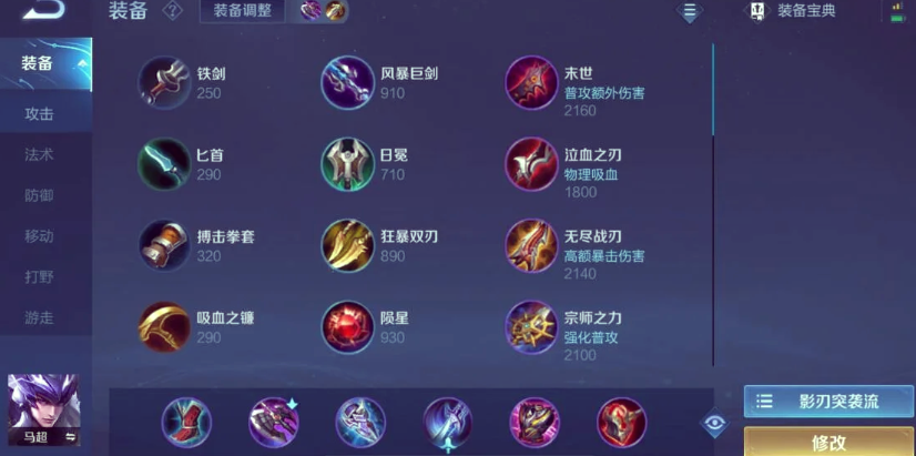出装方面,半肉输出流是当前版本的主流选择,这套出装能保证伤害的同时大幅提升生存能力。常规对抗路出装顺序为:冷静之靴、暗影战斧、宗师之力、不祥征兆、不死鸟之眼和名刀·司命。冷静之靴提供的前期冷却缩减对马超频繁释放技能至关重要。暗影战斧是核心输出装,提供攻击、冷却、生命值与物理穿透。宗师之力则能强化使用技能后的下一次普攻,完美配合马超捡枪后的强化戳刺,其移速加成也进一步放大了被动收益。后续的不祥征兆与不死鸟之眼分别针对物理和法术伤害,提升抗性与续航。名刀·司命作为关键时刻的保命装备,能创造残血反杀或安全撤离的机会。若选择打野路线,则将冷静之靴替换为追击刀锋(后期合成贪婪之噬),以提升刷野效率与发育速度。