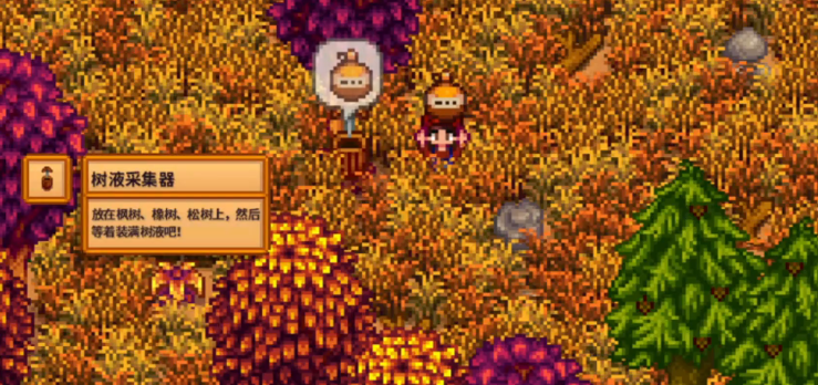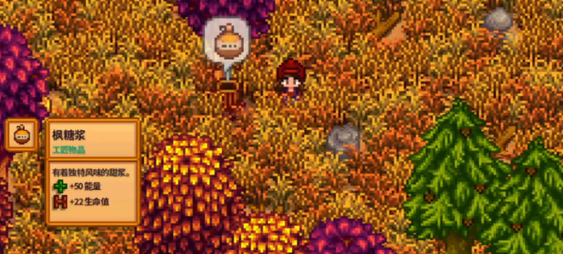 甜酱是从枫树上收集到的树液,你需要先制作树液桶挂到枫树上,等上几天就能收获。制作树液桶得用到木工台,材料是40个木材和1个铜锭,铜锭得用铜矿石在熔炉里炼出来。树液桶做出来后,找棵枫树右键挂上去,它就会开始收集甜酱,这个过程大概要7到8天游戏时间。等桶装满了,上面会出现甜酱的图案,这时候再点一下桶就能把甜酱收进背包。