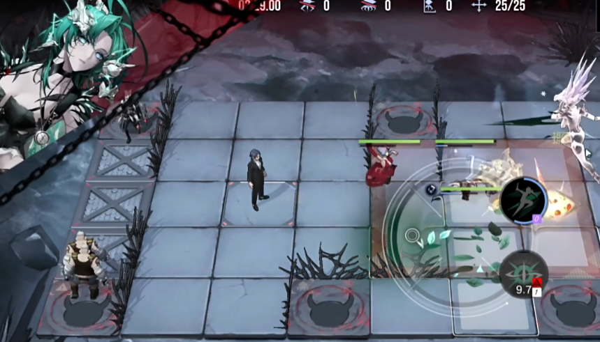 在普通状态下释放必杀,她会位移并对直线两格范围内的敌人造成1点核心伤害。而进入侵蚀状态后再次释放必杀,则不会位移,但能对相同范围的敌人造成2点核心伤害。由于该技能可以充能两次,在侵蚀状态下一次性释放两次必杀能瞬间打出极高的范围伤害与总计4点破核伤害,这是她最核心的爆发手段。侵蚀状态的触发与维持依赖对敌人造成伤害来叠加和刷新层数,这是持续输出的基础。