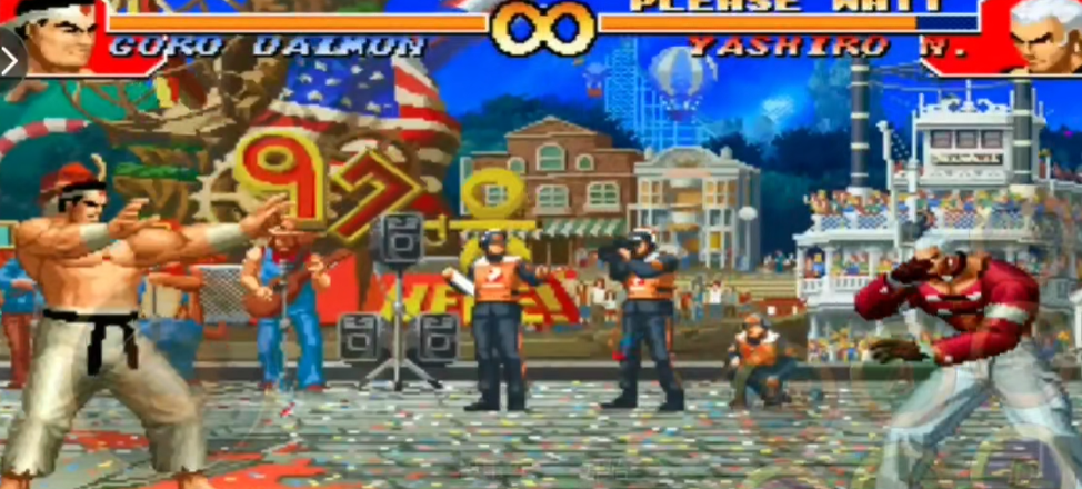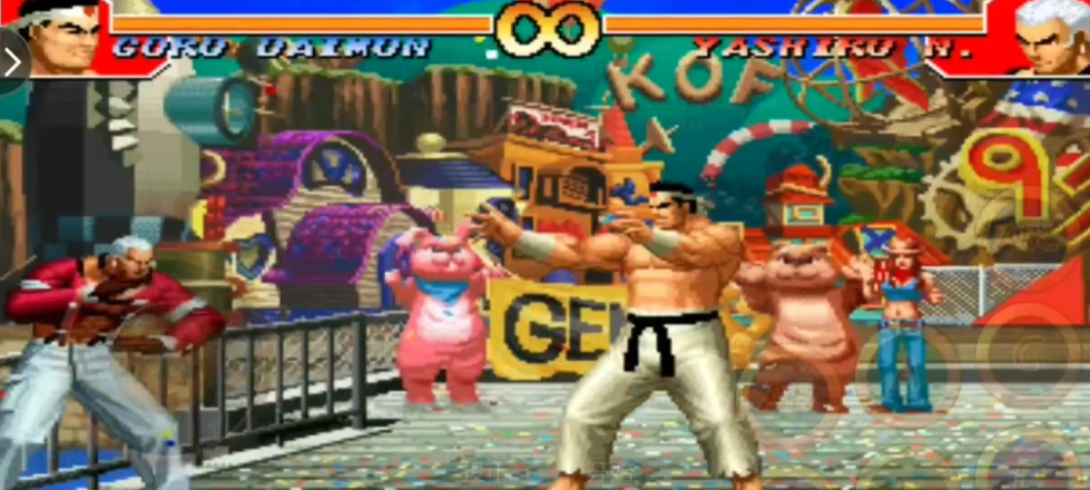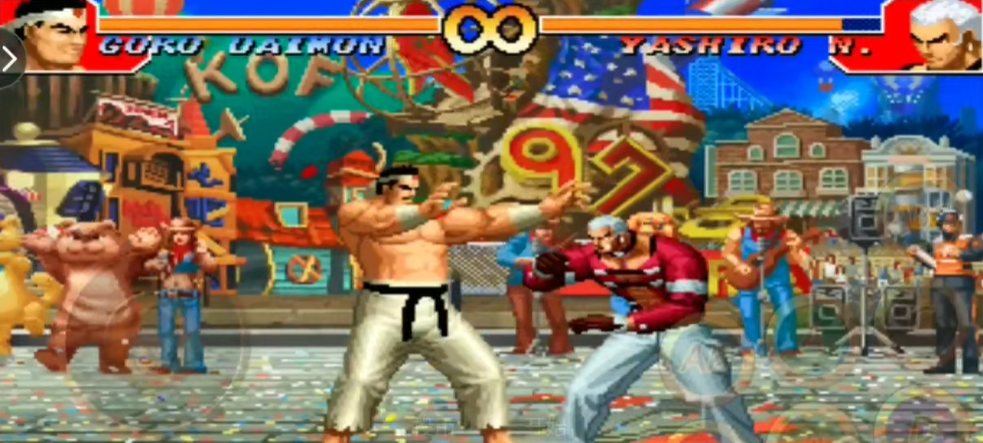 大门五郎释放大招需要先积攒能量槽,当角色下方的能量条积满并转化为能量点时,才能释放超必杀技。大门的超必杀技主要通过特定方向键组合配合攻击键触发,例如地狱极乐落的指令是近身时快速输入两次前下后再按拳键,而岚之山则需要近身时快速输入两次后下前再按脚键,在成功抓住对手后,可以继续输入指令派生后续的切株返,若此时能量处于最大态,还能进一步转化为续·天地返,这两种方式是其最主要的毁灭性投技。