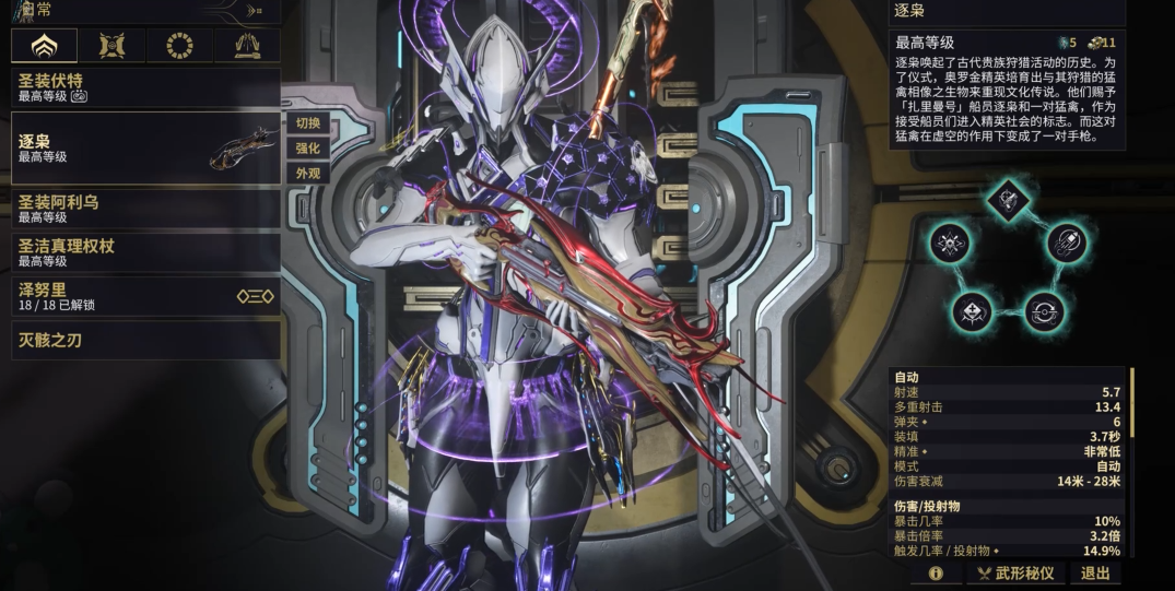 你面临的第一个重要选择就是在圣剑、伏特和磁力三个初始战甲中挑一个,这个选择会直接影响你早期的游戏体验,因为每个战甲都拥有独特的技能和玩法风格。圣剑是最受推荐的新手首选,它以其均衡的属性和全面的技能组合著称,生存能力不错且操作直观,技能兼顾位移、控制与爆发,完美适配新手对近战战斗的摸索,在前期无需投入过多资源就能成型,是公认最不容易出错的选择。