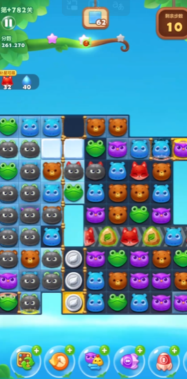 在局面陷入僵持、看似无路可走时,需要多观察棋盘的边角或被障碍物遮挡的位置,那里常常隐藏着能够组合成特效的机会。鸡蛋的孵化过程在此关比较重要,持续消除能孵化出更多小动物,尤其是小黄鸡,为制造特效提供更多可能。中后期要专注于利用特效直接点亮赛道,并确保蜗牛的收集进度。
