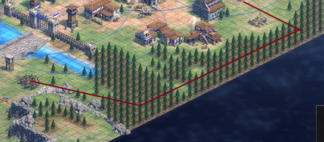 青色敌人是中期需要面对的主要威胁,其投石车等攻城武器对主力部队构成严重风险,操作不够精细时切忌贸然强攻。可通过拉扯消耗战术削弱其力量,重点在于利用其城堡未装备近射孔科技的防御漏洞,派遣骑兵等高机动单位强行贴近城堡作战,以较低代价实现拆除。家中需保持至少30名村民持续采集资源,确保军事单位能及时补充,同时警惕右下角可能存在的敌方隐藏城镇中心,全面探索地图避免任务意外失败。