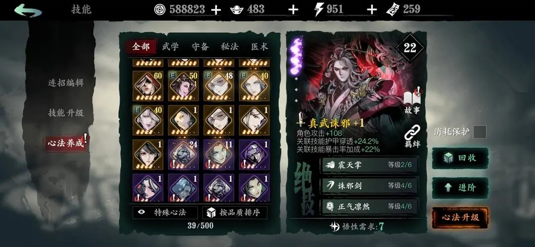 装备刻印需要针对性配置,斗篷推荐混沌+破+冷静组合,衣服必备五圣祝福+5,鞋子选择灵燕飞舞+6提升机动性。心法关联技巧很关键,白衣留情铸魂后即使放在副卡槽也能生效,建议将其置于固影前的位置。万魔提供的55%爆伤和攻防加成不可替代,而九天心法的无CD绝技在爆发阶段收益极高。记得利用格挡取消技能后摇,比如释放无限剑幕后立刻格挡能缩短CD时间。